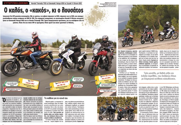 Η συγκριτική δοκιμή του ανανεωμένου Suzuki V-Strom απέναντι στο Honda Transalp και το Kawasaki Versys.