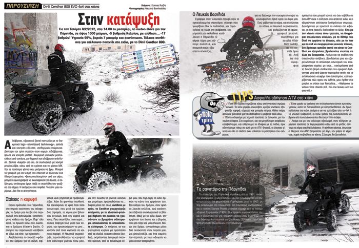 Μη χάσετε, τέλος, την παρουσίαση του Dinli Centhor 800 EVO 4x4 στις χιονισμένες πλαγιές της Πάρνηθας, αλλά και την επί χάρτου παρουσίαση του νέου Triumph Tiger 1200 Explorer, του βρετανού διεκδικητή της κορυφής στην κατηγορία των mega on-off.