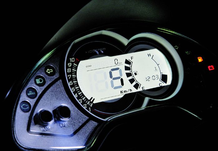 Η LCD οθόνη περιλαμβάνει όλες της απαραίτητες ενδείξεις με τη θερμοκρασία, το στροφόμετρο και τη στάθμη καυσίμου να παρουσιάζονται αναλογικά.