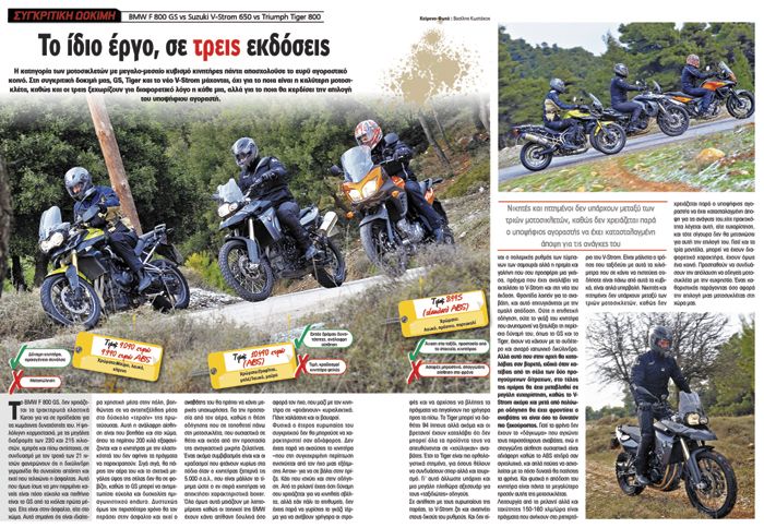 Και, τέλος, υπάρχει και το είδος το δημοφιλές. Πρόκειται για την αγαπητή στη χώρα μας κατηγορία των μεσαίων on-off, η οποία δέχθηκε πρόσφατα στις τάξεις της το ανανεωμένο best seller, Suzuki V-Strom 650, με αποτέλεσμα να αλλάξουν οι ισορροπίες. Στη συγκριτική δοκιμή του τεύχους, το βάζουμε αντιμέτωπο με τα ευρωπαϊκά BMW F 800 GS και Triumph Tiger 800.