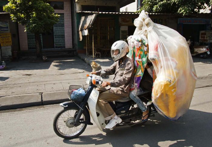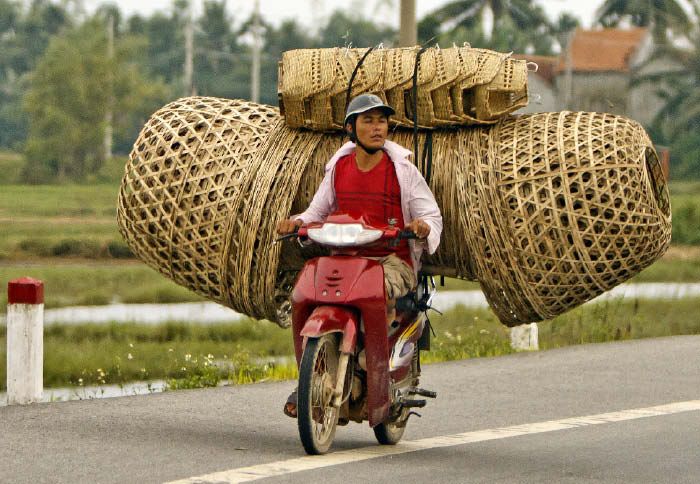 (2): Ένα καλάθι, αλλά πολύ μεγαλύτερο βάρος για το συμπαθές παπί της φωτογραφίας. Δεν ξέρουμε να σας πούμε για το ζύγισμα και τη συμπεριφορά του παπιού, αλλά ο τύπος φαίνεται να κουβαλά όχι εμπόρευμα, αλλά ολόκληρό το κατάστημά του!