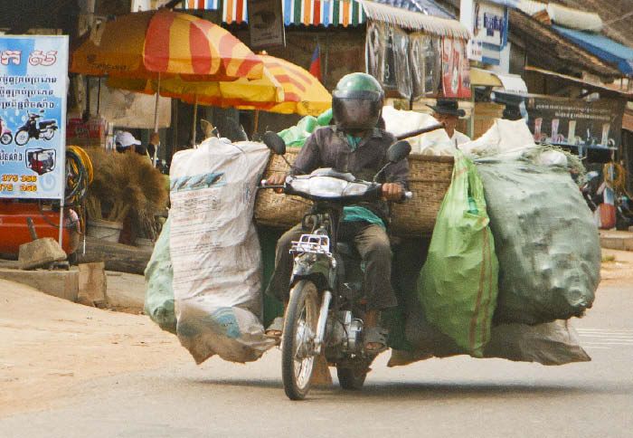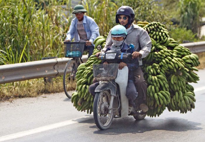(5): Το ίδιο συμβαίνει και με το παπί της φωτογραφίας, αλλά με σαφώς μεγαλύτερο φορτίο! Αναρωτιόμαστε, αν σε αυτές τις χώρες τα παπιά συνοδεύονται και από δελτία Τύπου που αναφέρουν, για παράδειγμα, «μπορεί ο ανταγωνισμός να καυχιέται ότι μπορεί να μεταφέρει δύο άτομα και δύο σακιά, αλλά το δικό μας παπί μεταφέρει δύο άτομα και 64 τσαμπιά μπανάνες»!