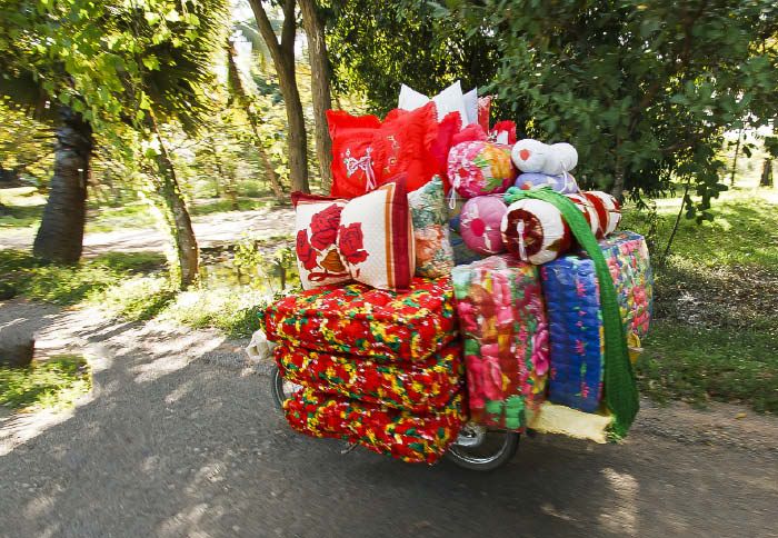 (6): Βέβαια, καλό είναι να κουβαλάς τόσο εμπόρευμα και τον συνεργάτη σου μαζί, αλλά, δε μπορεί, κάπου θα θεωρείται παράνομο τόσο βάρος. Σε αυτές τις χώρες ή επαρχίες, η λύση είναι διαφορετική. Ο συνεπιβάτης δεν κάθεται πάνω, αλλά μέσα στα πράγματα! Και περνάς απαρατήρητος, σφυρίζοντας αδιάφορα.