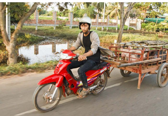 (1): Ακόμη και το πιο σκληροτράχηλο παπί έχει και τα όριά του, τα οποία τίθενται από καθαρά χωροταξικά κριτήρια. Η λύση είναι, φυσικά, ένα τρέιλερ! Περιορίζει λίγο την ευελιξία, αλλά ανοίγει νέους ορίζοντες στο παπί και τον αναβάτη του, οι οποίοι ξεκινούν από το καρότσι της φωτογραφίας (γεμάτο με ζωντανά) και μπορούν να καταλήξουν ακόμη και σε τροχόσπιτο!
