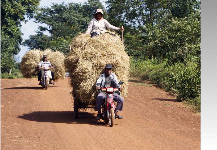 (2): Κι αν ο κύριος της φωτογραφίας σκόπευε να φτιάξει τροχόσπιτο πίσω από το παπί του, μάλλον δε γνωρίζει το παραμύθι με τα τρία γουρουνάκια. Η γυναίκα του, πάντως, μοιάζει ευχαριστημένη και με το παραπάνω. Προσέξτε, υπό ένα λαογραφικό και ανθρωπολογικό πρίσμα, πώς το θηλυκό προτιμά τον άνδρα με τα περισσότερα δεμάτια σανό στο παπί του και αδιαφορεί για τον τεμπέλη από πίσω.
