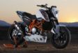 Η συγκεκριμένη έκδοση είναι για λίγους καθώς μόνο 200 μοτοσικλέτες θα δουν το φως της παραγωγής. Σύμφωνα με την ΚΤΜ η τιμή της θα βρίσκεται κάτω από τα 10.000 ευρώ και οι αλλαγές που έχει δεχτεί σε σχέση με το στάνταρ μοντέλο είναι αρκετές για να το κάνουν το απόλυτο παιχνίδι για την πίστα. Το μεγαλύτερο μέρος των εξαρτημάτων που έχουν χρησιμοποιηθεί στο Duke «Track» προέρχεται από τη λίστα Power Parts της αυστριακής εταιρίας και έχουν οδηγήσει στην αύξηση της ισχύος του ισχυρότερου μονοκύλινδρου κινητήρα παραγωγής κατά 9 ίππους (στους 79), ενώ το βάρος έχει μειωθεί κατά 10 ολόκληρα κιλά! Συγκεκριμένα, το πρώτο πράγμα που λάμπει δια της απουσίας του είναι ο εξοπλισμός δρόμου. Ολόκληρη η εξάτμιση αλλάχθηκε με μία κατασκευασμένη από τιτάνιο της Akrapovic, έγιναν μετατροπές στο φιλτροκούτι για την καλύτερη αναπνοή του κινητήρα, ενώ τοποθετήθηκε και εκκεντροφόρος από τα Power Parts της ΚΤΜ, με ανάλογη αλλαγή και στη χαρτογράφηση του ψεκασμού.