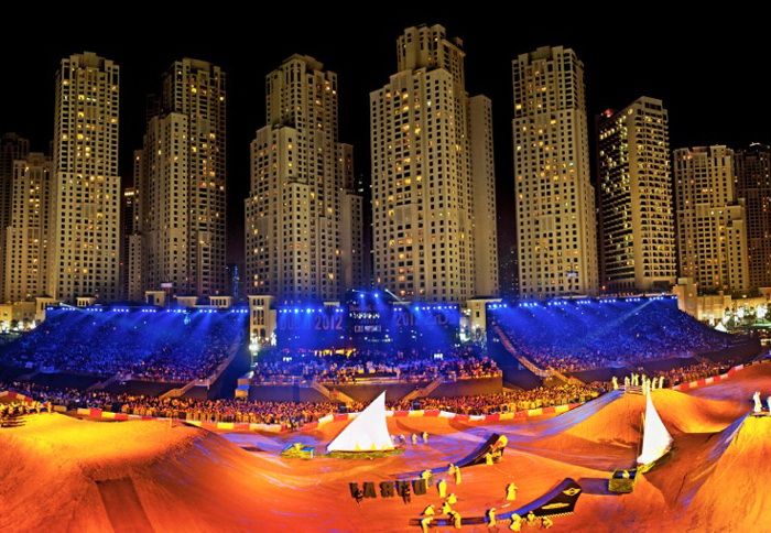 H εντυπωσιακή χωμάτινη πίστα κατασκευάστηκε πάνω στη λευκή άμμο του Walk, στη Jumeirah Beach Residence.