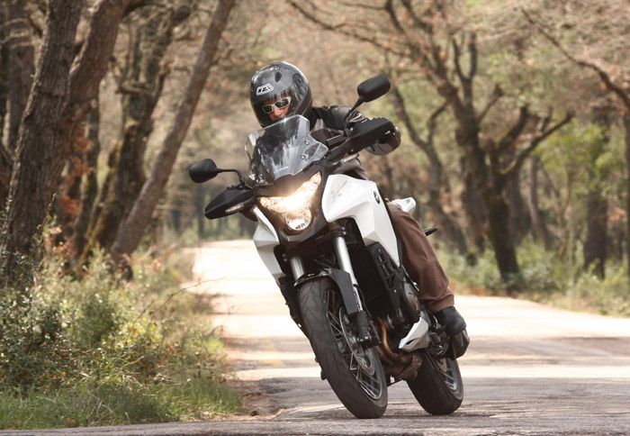 Ναι, έχει ράμφος. Και παρόλο που το παρελθόν δεν έχει δώσει τα καλύτερα αποτελέσματα όσον αφορά στις μοτοσικλέτες με… ράμφη (βλέπε DR-Big, KTM 690 LC4 07-08), εδώ η Honda έχει κάνει καλή, και διακριτική δουλειά. Ο προβολέας τώρα διαθέτει δύο φωτιστικά σώματα, τοποθετημένα το ένα πάνω από το άλλο, ώστε να μειωθεί ακόμα περισσότερο η μετωπική επιφάνεια της μοτοσικλέτας. Οι χούφτες είναι διακριτικές (και δεν κόβουν και πολύ αέρα ή κρύο), όπως διακριτική είναι και η μικρή ζελατίνα, που διαθέτει μικρό εύρος ρυθμίσεων, και δυστυχώς απαιτεί τη χρήση εργαλείων για τη ρύθμιση της.