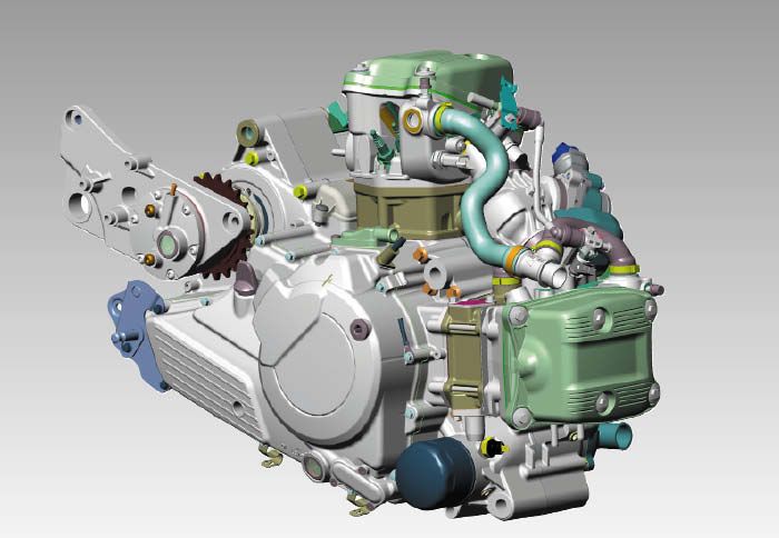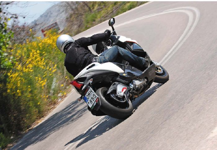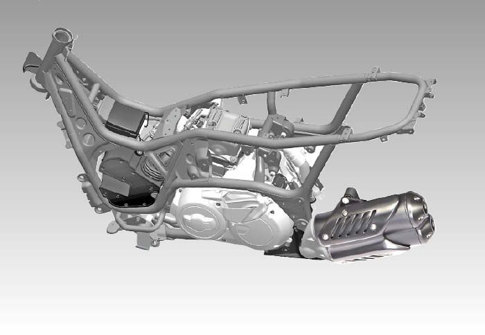 Επίσης, οι άξονες του κιβωτίου αλλά και ο στροφαλοφόρος περιστρέφονται αντίθετα από τους τροχούς, ώστε να μειωθεί η περιστροφική αδράνεια και να αυξηθεί η ταχύτητα αλλαγής κατεύθυνσης. Για τη μείωση των κραδασμών που φτάνουν στον αναβάτη, το μοτέρ δένει πάνω στο πλαίσιο μέσω σινεμπλόκ. Αυτό γίνεται άμεσα αντιληπτό, αφού στη σέλα δεν καταλήγουν παρά μόνο κάποιοι παλμοί που ενισχύουν το σπορ χαρακτήρα του μοντέλου και σε καμία περίπτωση δεν ενοχλούν. Εξαιρετικό είναι και το μπάσο soundtrack που απελευθερώνουν τα τελικά που σου φτιάχνει τη διάθεση στις χαμηλές ταχύτητες χωρίς παράλληλα να ενοχλεί.