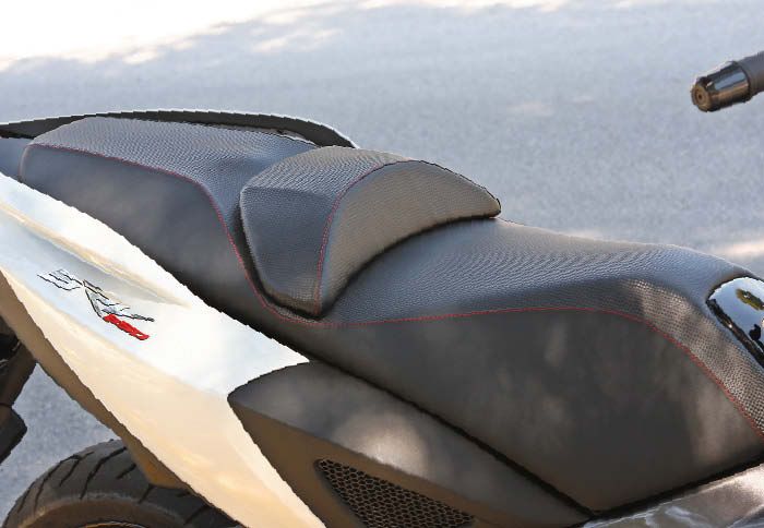 Το κοινό DNA του SRV, με τον άλλο μεγάλο καρχαρία της scooteroθάλασσας, GP 800, είναι φανερό και σε αυτούς τους τομείς που θυμίζουν περισσότερο μοτοσικλέτα παρά
