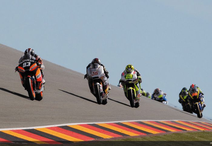 Το θέαμα, σαφώς πιο πλούσιο από τα MotoGP, όχι όμως όσο χορταστικό μας έχει συνηθίσει η κατηγορία. Έφταιγε και το ότι, ο Espargaro δεν κατάφερε να γυρίσει γρήγορα, ούτε στα δοκιμαστικά (17ος), ούτε στον (στεγνό κι εδώ) αγώνα, αφού τερμάτισε 4ος μετά από μια τρομερή υπερπροσπάθεια, αλλά και ορισμένα θεαματικά λάθη. Στη Γερμανία, πρωταγωνιστής ήταν ο Marc Marquez, αφού ο καμικάζι Iannone δεν πρόλαβε να περάσει πρώτος στον 8ο γύρο, και έπεσε, αφήνοντας τον Marquez στην ησυχία του, να διανύσει τους υπόλοιπους γύρους χωρίς μάχη, μέχρι την καρό σημαία. Ούτε ο Luthi μπόρεσε να κάνει κάτι στο Sachsenring, με τον Mika Kalio να παίρνει άξια μια δεύτερη θέση, και τον Alex de Angelis να βγαίνει τρίτος. Στο πρωτάθλημα, ο Marquez αύξησε τη διαφορά του από τον δεύτερο Espargaro, και πλέον προηγείται με 43 βαθμούς.