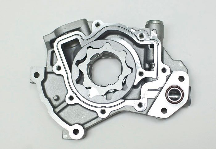 Η κυκλοφορία του ζωτικού λαδιού του κινητήρα επιτυγχάνεται από μια αντλία / τρόμπα που κινείται από έναν ιμάντα συνδεδεμένο με τον κινητήρα. Η αντλία λαδιού είναι ένα νευραλγικό κομμάτι του κυκλώματος λίπανσης, καθώς αν αυτή χαλάσει, τότε το πιθανότερο είναι να κολλήσει ο κινητήρας, με μεγάλο κόστος για την επισκευή του. Σημειώστε επιπλέον πως ενώ γενικά τα δίχρονα είναι οικονομικότατα στην συντήρηση / επισκευή τους, στην τρόμπα λαδιού ειδικά, πρέπει να κατέβει ο κινητήρας για την αλλαγή της, με κόστος περίπου 3πλάσιο από ό,τι σε κάποιο δίκυκλο με 4χρονο κινητήρα! Οι τύποι της αντλίας λαδιού είναι οι εξής: Με γρανάζια (παλαιότερος τύπος), με πιστόνι (επίσης παλαιός τύπος), τροχοειδής αντλία (απαντάται σχεδόν σε όλα τα σύγχρονα δίκυκλα, με γρανάζια σε σχήμα αστεριού με στρογγυλευμένες άκρες), και φυγοκεντρικός τύπος (σπάνια απαντάται).