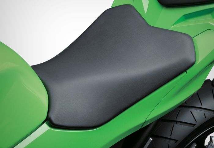Σε όλα όσα εκτιμήσαμε πάνω στο Ninja 250R (άνετη και όρθια θέση οδήγησης, χαμηλή σέλα, ικανοποιητική προστασία από τον αέρα) προστέθηκαν και νέα. Πρώτα απ’ όλα, η σέλα όχι μόνο παρέμεινε στο ίδιο ύψος (785 χλστ.), αλλά έγινε και πιο στενή στο μπροστινό μέρος, ώστε κανείς αναβάτης, ανεξαρτήτου ύψους και φύλου, να μην έχει πρόβλημα να πατήσει με σιγουριά στην άσφαλτο. Αυτό το στοιχείο βολεύει περισσότερο τις γυναίκες (μη γελιέστε, το 22% των ιδιοκτητών ενός Ninja 250R είναι γυναίκες), όπως και το επόμενο. Η μανέτα του συμπλέκτη παρουσιάζει κατά 25% λιγότερη αντίσταση στο τράβηγμα και δεν κουράζει, ειδικά μέσα στην πόλη, όπου οι αλλαγές σχέσης είναι πολύ πιο συχνές (όχι και τόσο, βέβαια, χάρη στις νέες ρυθμίσεις – περισσότερα παρακάτω).