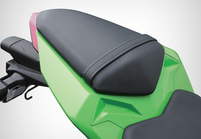 Και ο συνεπιβάτης, όμως, απασχόλησε τους σχεδιαστές της Kawasaki. Η σέλα του παραμένει μικρή, αλλά είναι πιο επίπεδη, ώστε να μη γλιστράει εύκολα μπροστά. Και κάτω από την ουρά υπάρχουν ειδικά σχεδιασμένες εσοχές, ώστε να κρατιέται με ασφάλεια. Σημαντικό στοιχείο, τέλος, αποτελούν τα επανασχεδιασμένα πλαϊνά μέρη του φέρινγκ και τα καλύμματα του ψυγείου. Πλέον, ο ζεστός αέρας από τον κινητήρα κατευθύνεται μακριά από τα πόδια του αναβάτη, κάτι που δε με επηρέασε, βέβαια, στη Γερμανία, όπου οδήγησα το Ninja 300R, αλλά σίγουρα θα εκτιμηθεί κατά το ελληνικό καλοκαίρι.
