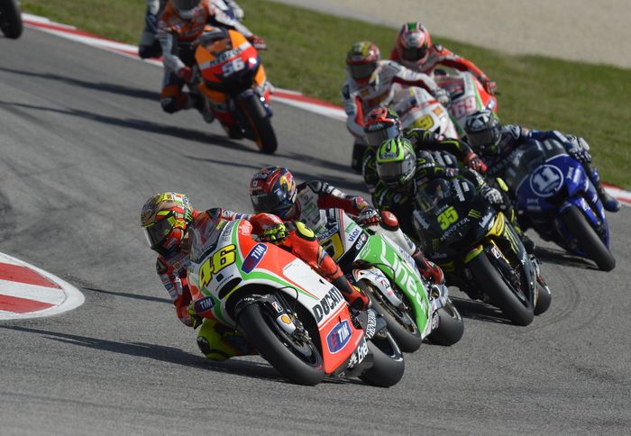Φτάσαμε και στον αγώνα. Ή μάλλον, λίγο πριν από αυτόν. Αφού έγινε ο γύρος προθέρμανσης, οι αναβάτες στήνονται στην εκκίνηση. Όμως ένα πρόβλημα με τον συμπλέκτη στη μοτοσικλέτα του Abraham, μεταφράστηκε σε false start, αφού ο Karel εκκίνησε πριν σβήσουν τα φώτα. Η εκκίνηση αναβλήθηκε, τα νεύρα τεντώθηκαν, και ένα σμάρι μηχανικών μπήκε στην πίστα. Κατά την αναμονή, ο Lorenzo βγήκε για λίγο από την πίστα, επιστρέφοντας σύντομα μετά. Όταν όμως ο Pedrosa προσπάθησε να τον μιμηθεί, βρήκε στην επιστροφή του τους τεχνικούς της Honda να σπρώχνουν με δυσκολία τη μοτοσικλέτα του… εκτός πίστας. Αυτό έγινε αφού με κάποιο ανεξήγητο τρόπο, όταν πήγαν να αφαιρέσουν την κουβέρτα, ο μπροστινός τροχός «κλείδωσε», και δεν γύριζε! Ο Ισπανός χειρονομούσε σαν τρελός, μην μπορώντας να πιστέψει την ατυχία του. Κι όταν κατάφεραν οι τεχνικοί να λύσουν το πρόβλημα, είχε περάσει το 1 λεπτό που είχαν δώσει χρόνο επανεκκίνησης, οπότε ο Pedrosa αναγκάστηκε να εκκινήσει τελευταίος! Άδικοι ίσως οι κανόνες, αλλά… κανόνες. Ο γύρος προθέρμανσης επαναλήφθηκε, και η δεύτερη εκκίνηση έγινε χωρίς άλλο πρόβλημα.