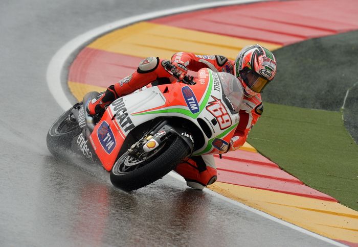 Πιέζει ο Hayden, προσπαθώντας να ξεπεράσει τα προβλήματα της Ducati του, όμως με αυτό τον τρόπο έχει μια σειρά από ατυχήματα.