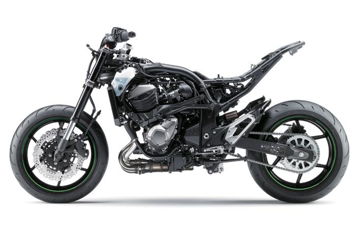 Μακρύτερο ψαλίδι αλλά και ενισχύσεις στην περιοχή του κινητήρα δέχτηκε το πλαίσιο ώστε να βελτιωθεί η συμπεριφορά του Ζ800 στις στροφές.