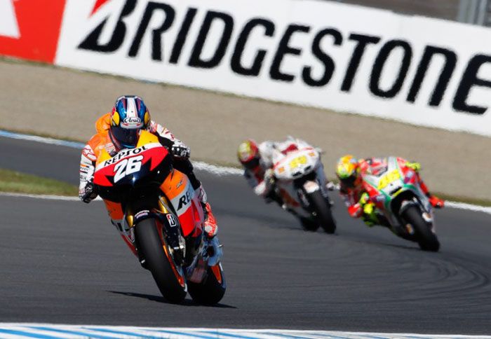 O Jorge Lorenzo, με την εργοστασιακή Yamaha, μπήκε φουριόζος και σημείωσε εξαιρετικούς χρόνου, μέχρι το 1.46.392, επίδοση που μέχρι εκείνη τη στιγμή ήταν η καλύτερη της ημέρας. Ο Dani Pedrosa βρισκόταν, στο μεγαλύτερο διάστημα του πρώτου σκέλους, 6 δέκατα πίσω από το συμπατριώτη του και μεγάλο αντίπαλό του, αλλά σταδιακά ανέβασε ρυθμούς, μείωσε τη διαφορά και στο τέλος του δεύτερου σκέλους, πέτυχε τον καλύτερο χρόνο της ημέρας με 1:46.088!
