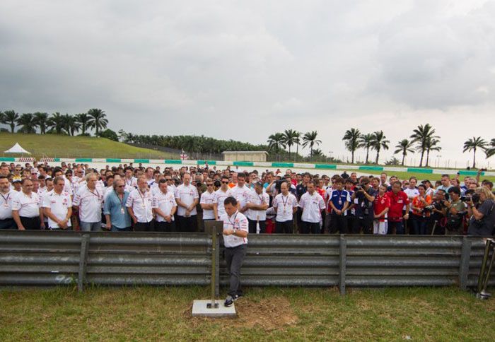 Σύσσωμο το paddock, συγκεντρώθηκε στην... καταραμένη στροφή 11 της πίστας της Sepang, για να τιμήσει τη μνήμη του Marco Simoncelli, στις εκδηλώσεις που προηγήθηκαν των δοκιμαστικών του Grand Prix Μαλαισίας.