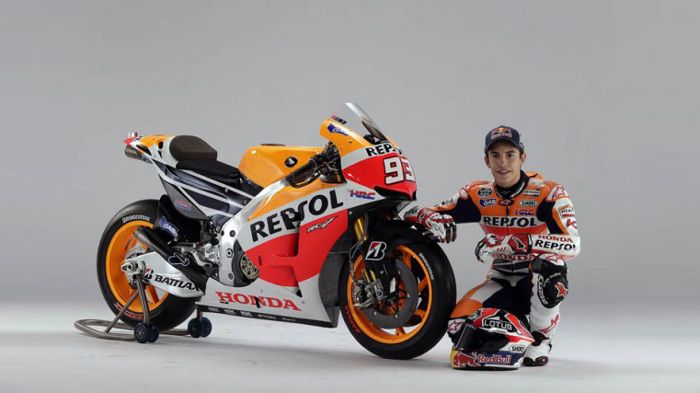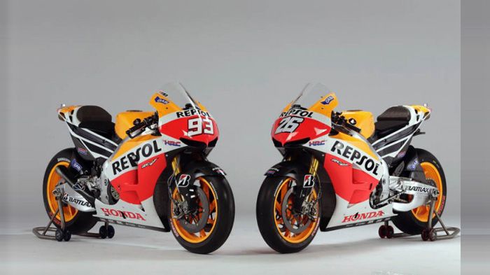 Ειδικότερα η νέα RC213V αποκαλύφθηκε με τους Dani Pedrosa και Marc Márquez, επίσημους αναβάτες της νέας σεζόν επί σκηνής. Πρώτη εντύπωση προκαλούν φυσικά οι νέοι χρωματισμοί που φέρουν «παραδοσιακά» την υπογραφή της Repsol. Διαφέρουν, ωστόσο, ελαφρά σε σχέση με το παρελθόν, με το κόκκινο και το λευκό να κάνει πιο έντονη την παρουσία του.