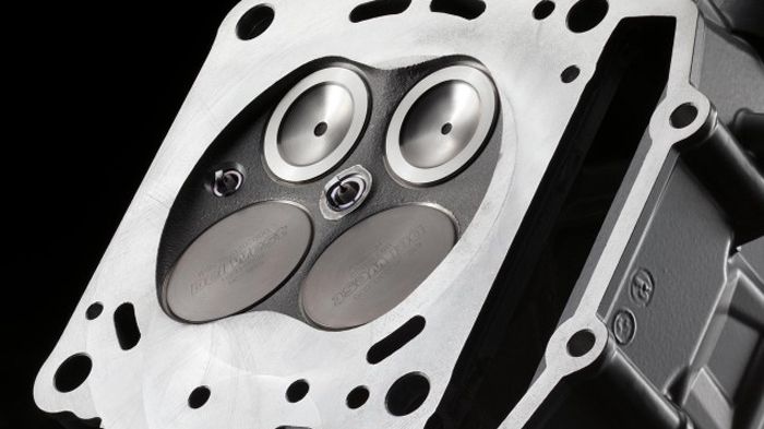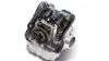 Εκεί βρίσκονται τα εξαρτήματα διανομής των αερίων, δηλαδή οι βαλβίδες, και τα εξαρτήματα κίνησής τους, όπως τα ελατήρια, τα ζύγωθρα (κοκοράκια) και τα καπελότα. Στην πλειοψηφία των σημερινών μοτοσικλετών, στην κυλινδροκεφαλή βρίσκονται και οι εκκεντροφόροι. Σε κινητήρες παλαιότερης σχεδίασης, ο εκκεντροφόρος βρισκόταν πλάγια, δίπλα στο στροφαλοφόρο άξονα, και η κίνηση στις βαλβίδες μεταδιδόταν με ωστήρια. Οι ρυθμοί περιστροφής των σημερινών κινητήρων μοτοσικλετών, όμως, είναι πολύ υψηλοί και τα ωστήρια δε μπορούν να αντεπεξέλθουν σε πολύ γρήγορους ρυθμούς κίνησης. Για αυτό οι πλάγιοι εκκεντροφόροι καταργήθηκαν και μεταφέρθηκαν στην κυλινδροκεφαλή (εκκεντροφόροι επικεφαλής).