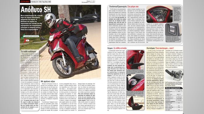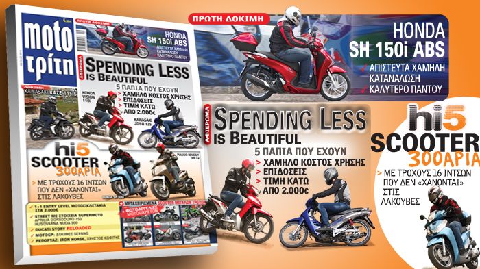 Και στις δύο δοκιμές του τεύχους, θα δείτε δύο μοντέλα που ξέρουν καλά πώς να ξεχωρίσουν. Στην περίπτωση του ανανεωμένου Honda SH 150i ABS, τα συγκριτικά πλεονεκτήματα είναι πολλά: το ABS, η απίστευτα χαμηλή κατανάλωση και η εξαιρετική οδική συμπεριφορά. Στην περίπτωση του νέου Kawasaki Kaze 115S, ξεχωρίζει η απόλυτα sport αισθητική, αλλά και η πρακτικότητα που προσφέρει στην πόλη.