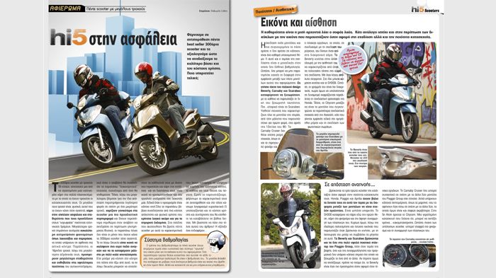 Σημαντικό πλεονέκτημα έναντι των υπόλοιπων scooter διαθέτουν και τα Hi5 scooter των 300 κ.εκ.. Συγκρίνουμε πέντε scooter με μεγάλους τροχούς και σας παρουσιάζουμε αυτά που ξεχωρίζουν στην εργονομία, τους χώρους, τις επιδόσεις και το κόστος χρήσης. Ποιο διαθέτει το συγκριτικό πλεονέκτημα ανάμεσα στα Aprilia Scarabeo 300S, Ηonda SH 300i, Piaggio Beverly 300 i.e. και SYM Citycom 300i CBS;
