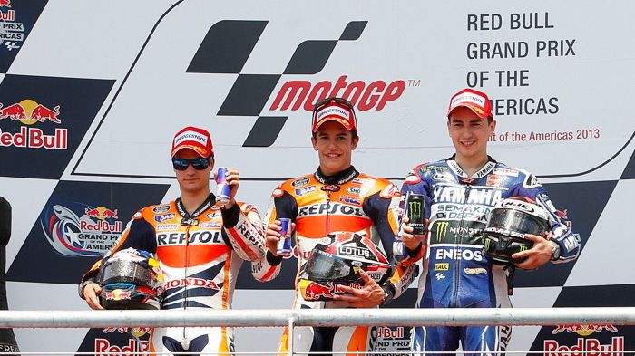 Ο Pedrosa βέβαια δεν μπορεί να είναι ιδιαίτερα χαρούμενος, παρά τη δεύτερη θέση, αφού τόσο καιρό παλεύει για το πρωτάθλημα, όμως εκείνο πάντα του ξεφεύγει. Το βάθρο στην COTA συμπληρώθηκε από τον Jorge Lorenzo, που ήταν 1,5 δευτερόλεπτο πίσω από τον Pedrosa –που ήταν 1,5 δευτερόλεπτο πίσω από τον Marquez. Σημειώστε πως η συγκεκριμένη κατάταξη αποτέλεσε και την εκατοστή φορά που ο Lorenzo έχει βρεθεί σε βάθρο, σε αγώνα MotoGP! Και παρόλο που ο Ισπανός βρέθηκε πίσω από τους 2 συμπατριώτες τους, δεν φάνηκε ιδιαίτερα στεναχωρημένος, αφού στο test είχε φανεί καθαρά η υπεροχή των Honda στη συγκεκριμένη πίστα.