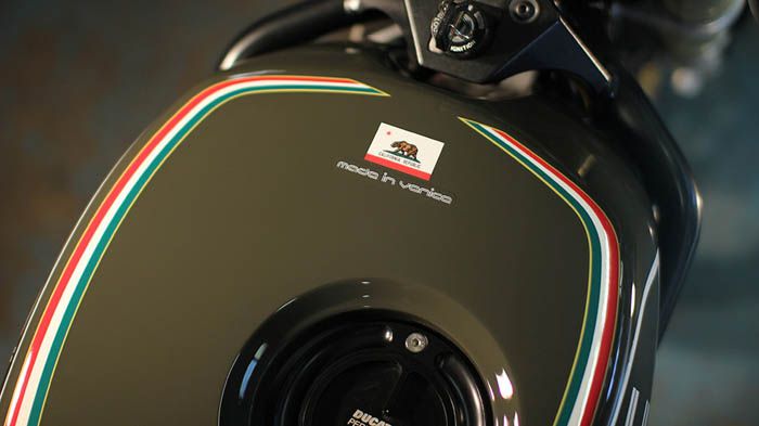 Ο σχεδιαστής από τις ΗΠΑ μετέτρεψε ένα Ducati Monster του 1994 στο μοντέλο της φωτογραφίας, προχωρώντας κυρίως σε αισθητικές αλλαγές. Πρώτα απ όλα, ο χρωματισμός του διαφέρει από οτιδήποτε έχουμε δει να βγαίνει από τις γραμμές παραγωγής της Ducati, ενώ το κοστούμι του, το οποίο εκτείνεται μονοκόμματα από το ντεπόζιτο μέχρι την ουρά, θυμίζει άλλες εποχές.
