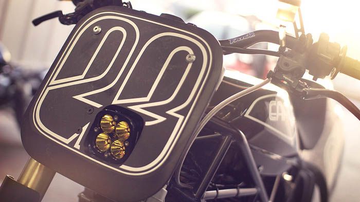 Ο δημιουργός του, ονόμασε το μοντέλο της φωτογραφίας Tracker και δήλωσε πως επιθυμούσε να επαναφέρει στη ζωή ένα εγκαταλελειμμένο Monster και να δημιουργήσει κάτι πραγματικά μοναδικό. Και το κατάφερε, φέρνοντάς μας μνήμες από τους αγώνες flat track περασμένων δεκαετιών. Το τελευταίο οφείλεται όχι μόνο στον γενικότερο σχεδιασμό του, αλλά και στα number plates που βρίσκονται πάνω στη μοτοσικλέτα, καθώς και στους μεγάλους τροχούς (σύμφωνα με το σχεδιαστή, ο μπροστινός τροχός ανήκει σε μοτοσικλέτα της Kawasaki και ο πίσω σε μοντέλο της Harley-Davidson.