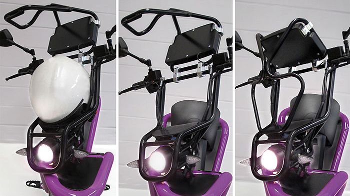 Οι μπάρες που συγκρατούν το κράνος-μέρος του εξοπλισμού- μπορούν να κλειδώσουν και να ξεκλειδώσουν μόνο από το κινητό του χρήστη. Φυσικά μπορείτε να χρησιμοποιήσετε και το δικό σας κράνος.