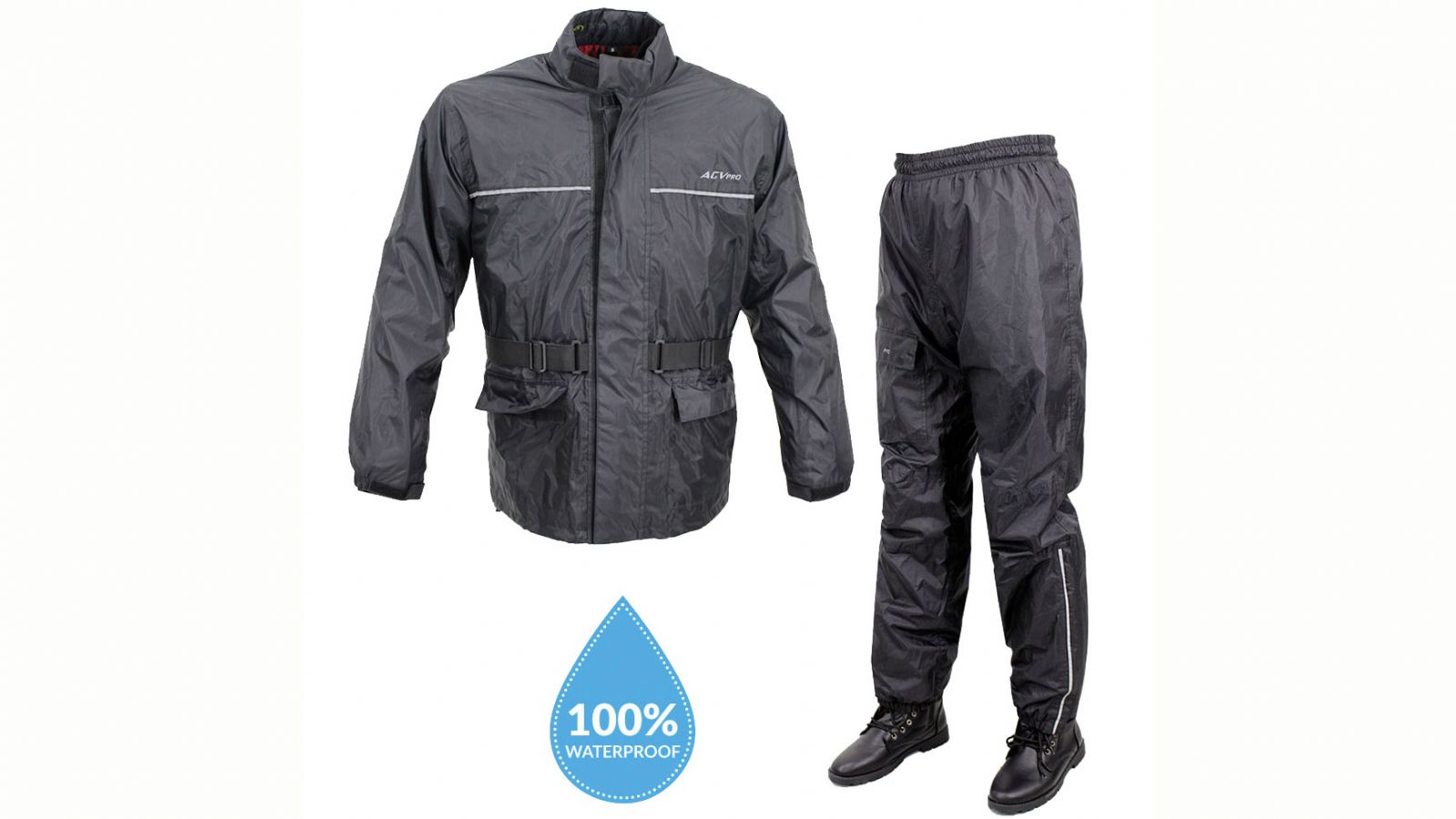 Αδιάβροχο σετ µπουφάν-παντελόνι AGVpro GV-700 µε θερμοκολληµένες ραφές και εσωτερική επένδυση.