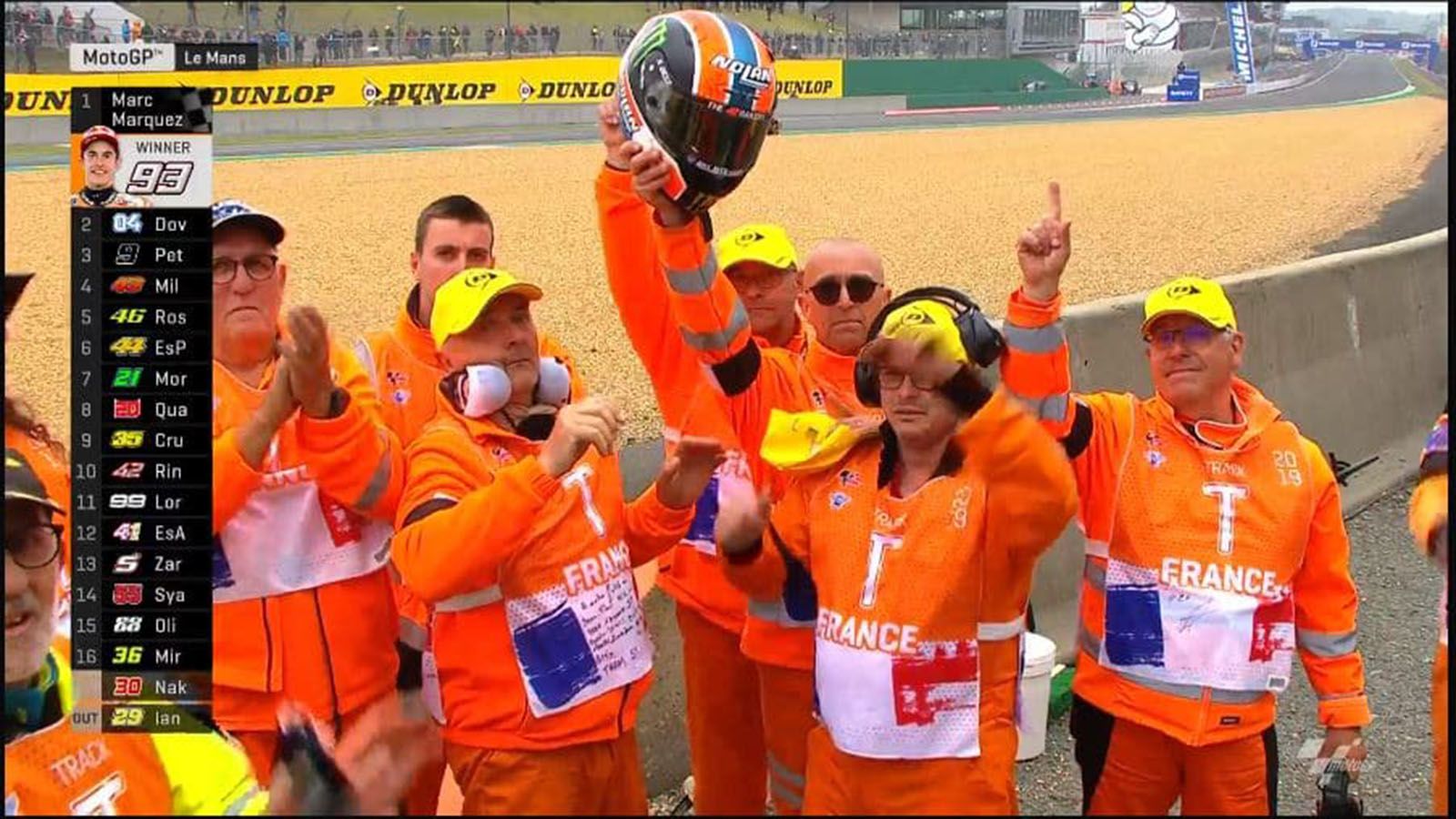Πρόκειται για μια χειρονομία με ιδιαίτερη βαρύτητα, καθώς οι κριτές και το προσωπικό της πίστας είναι οι αφανείς ήρωες των αγώνων: Παρά το ότι οι αναβάτες και οι μηχανικοί είναι «οι αστέρες» της δημοσιότητας, οι αγώνες δεν θα μπορούσαν να γίνουν χωρίς την συνδρομή των marshalls και του υπόλοιπου προσωπικού και αυτό, δεν πρέπει να το ξεχνάει κανένας.