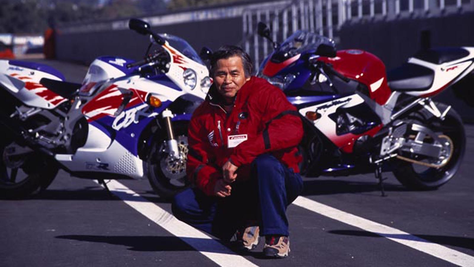 O Tadao Baba, μπροστά σε μια παλιότερη και μια πιο καινούργια CBR900RR!