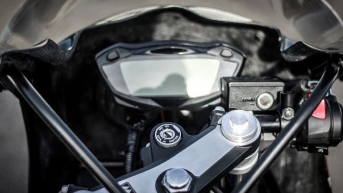 H εν λόγω μοτοσυκλέτα. Αστραφτερός χρωματισμός, μεγάλη προσοχή στην λεπτομέρεια και αναμφισβήτητη μοναδικότητα.