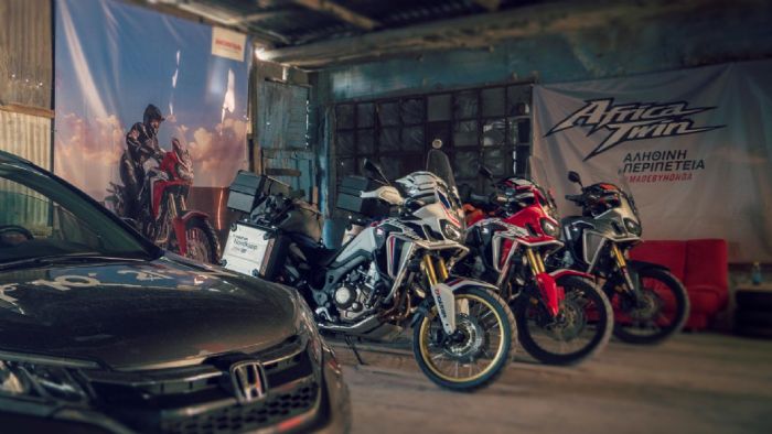 Σύντροφος των 3 αναβατών θα είναι η νέα CRF1000L Africa Twin που κληρονομεί και διαιωνίζει το πνεύμα των ένδοξων προγόνων της που έγιναν διάσημες με το σλόγκαν “go anywhere” (‘Πάμε Παντού’). Χρησιμοποιεί έναν καινοτόμο και ισχυρό, εν σειρά δικύλινδρο κινητήρα σε ελαφρύ, ευέλικτο πλαίσιο και δηλώνει έτοιμη για αληθινή περιπέτεια εντός και εκτός δρόμου, είτε διασχίζοντας ηπείρους ή σε καθημερινές αστικές διαδρομές. Εκτός από το στάνταρ μοντέλο, διατίθενται δύο ακόμα εκδόσεις: η πρώτη με ABS (με δυνατότητα απενεργοποίησης του, στο πίσω φρένο) και multiple mode Honda Selectable Torque Control (HSTC), και η δεύτερη με το μοναδικό Κιβώτιο Διπλού Συμπλέκτη - Dual Clutch Transmission της Honda (που περιλαμβάνει νέα λειτουργία off-road), ABS (με δυνατότητα απενεργοποίησης του, στο πίσω φρένο) και HSTC.