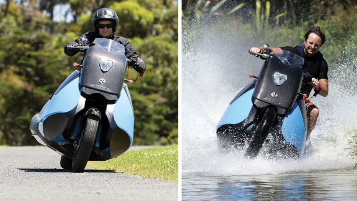 Ένα ξεχωριστό αμφίβιο όχημα που μέσα σε λίγα δευτερόλεπτα μετατρέπεται από scooter σε jet ski, υπόσχεται να γίνει αχώριστος σύντροφος το καλοκαίρι.