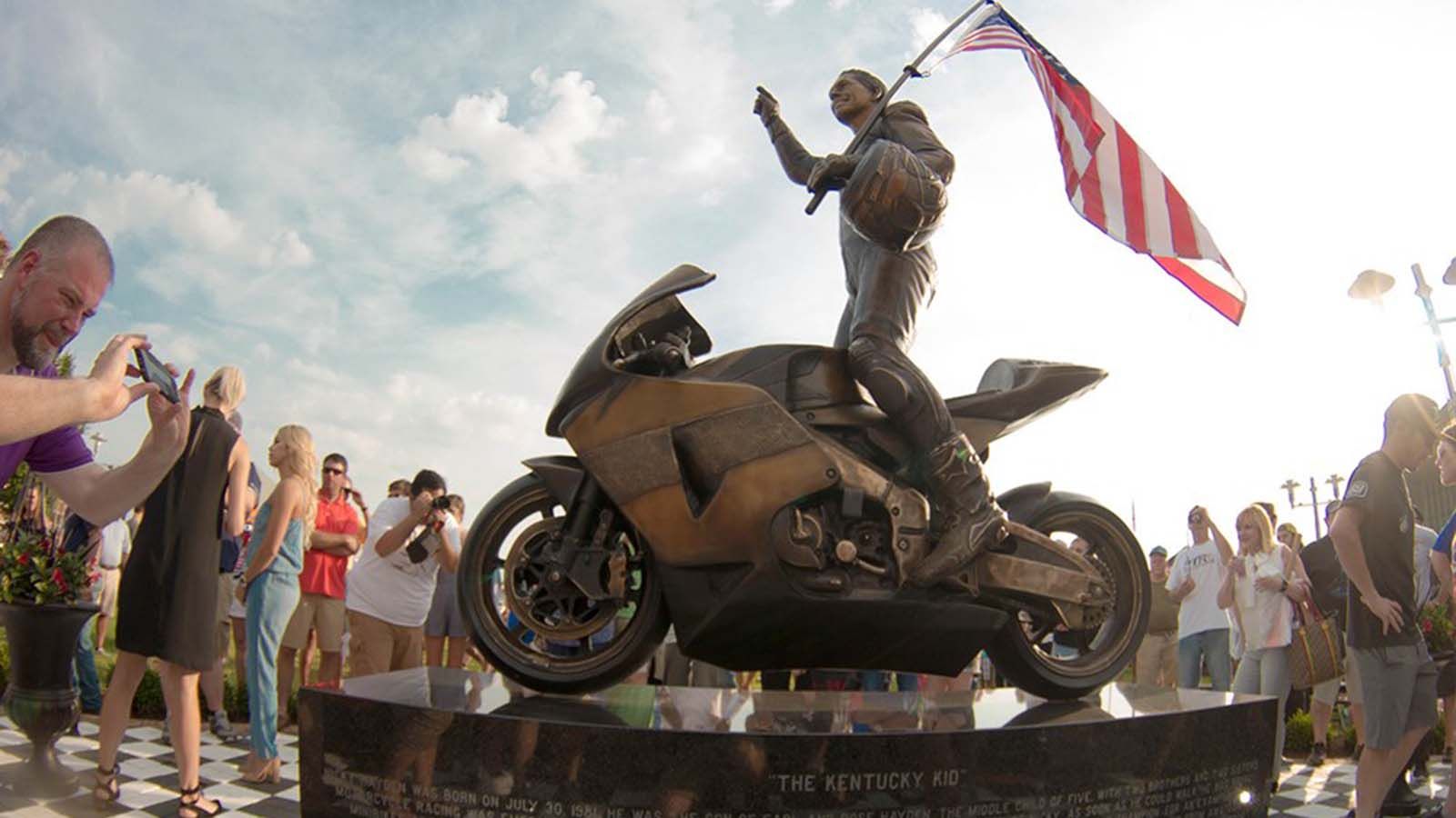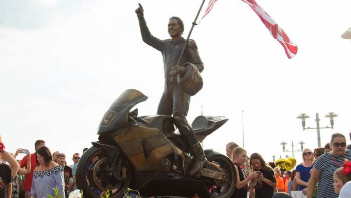 Όπως σας είχαμε γράψει και πριν λίγο καιρό, το Σάββατο 9 Ιουνίου θα γινόταν η αποκάλυψη του αγάλματος του Nicky Hayden στην πόλη του, το Owensboro του Kentucky. Έτσι και έγινε λοιπόν και το άγαλμα που βλέπετε στην εικόνα, είναι η απεικόνιση του αδικοχαμένου Nicky, ο οποίος έφυγε πέρσι τον Μάιο μετά από ατύχημα με το ποδήλατό του…