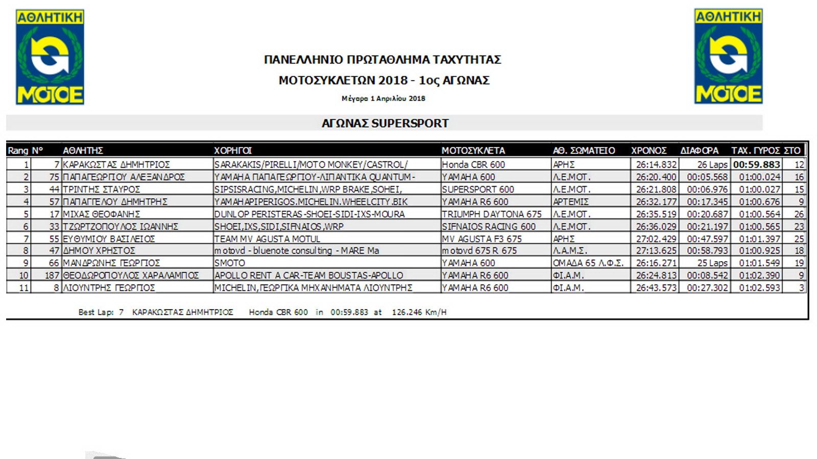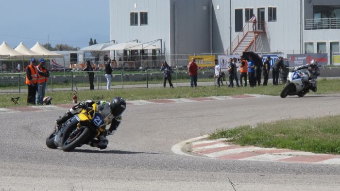Στην κατηγορία Supersport παραδοσιακά έχουμε δυνατές μάχες. Έτσι στην εκκίνηση του αγώνα ο Τριντής από την 3η θέση έστριψε πρώτος, ακολουθούμενος από τους Παπαγεωργίου, Παπαγγέλου και τον κάτοχο της pole position Καρακώστα.