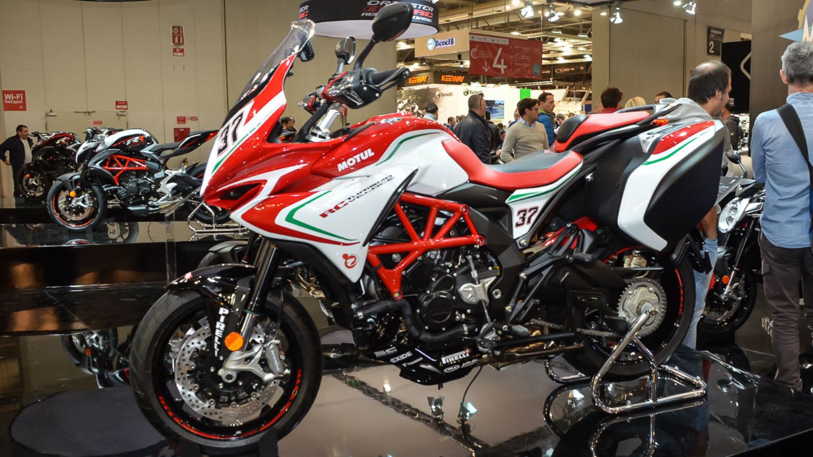 Η Turismo Veloce έχει επαναπροσδιορίσει την ιδέα των μοτοσυκλετών τουρισμού με τη μοναδική αισθητική και τις επιδόσεις της. Οι μικρές διαστάσεις, το χαμηλό βάρος και ο ιδιαίτερος σχεδιασμός, ήταν οι προτεραιότητες της MV Agusta, όταν κατασκεύαζε τη μοτοσυκλέτα. Ακόμα και οι πλαϊνές βαλίτσες δένουν σχεδιαστικά με τη την ουρά για να μη φαίνονται παράταιρες. Όταν βέβαια αυτές αφαιρεθούν, η μοτοσυκλέτα μεταμορφώνεται και δείχνει το δυναμικό της προφίλ. Ο τρικύλινδρος κινητήρας των 800 κυβικών, έχει βαφτεί μαύρος για τη συγκεκριμένη έκδοση και προσφέρει πολύ καλή αναλογία κιλών ανά ίππο. Τα LED φώτα κάνουν τη μοτοσυκλέτα άμεσα διακριτή, όταν κινείται στον δρόμο και δεν θα περάσει απαρατήρητη.