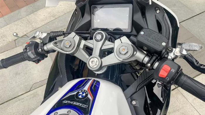 Με μια ματιά στο «γραφείο» του αναβάτη, διακρίνουμε, πέρα από την εκπληκτική ομοιότητα με την σχεδίαση της θέσης οδήγησης του S1000RR, ακόμα και… οθόνη οργάνων! Η εξάτμιση του μοντέλου θυμίζει… Akrapovic, ενώ φέρει και κάλυμμα carbon look.