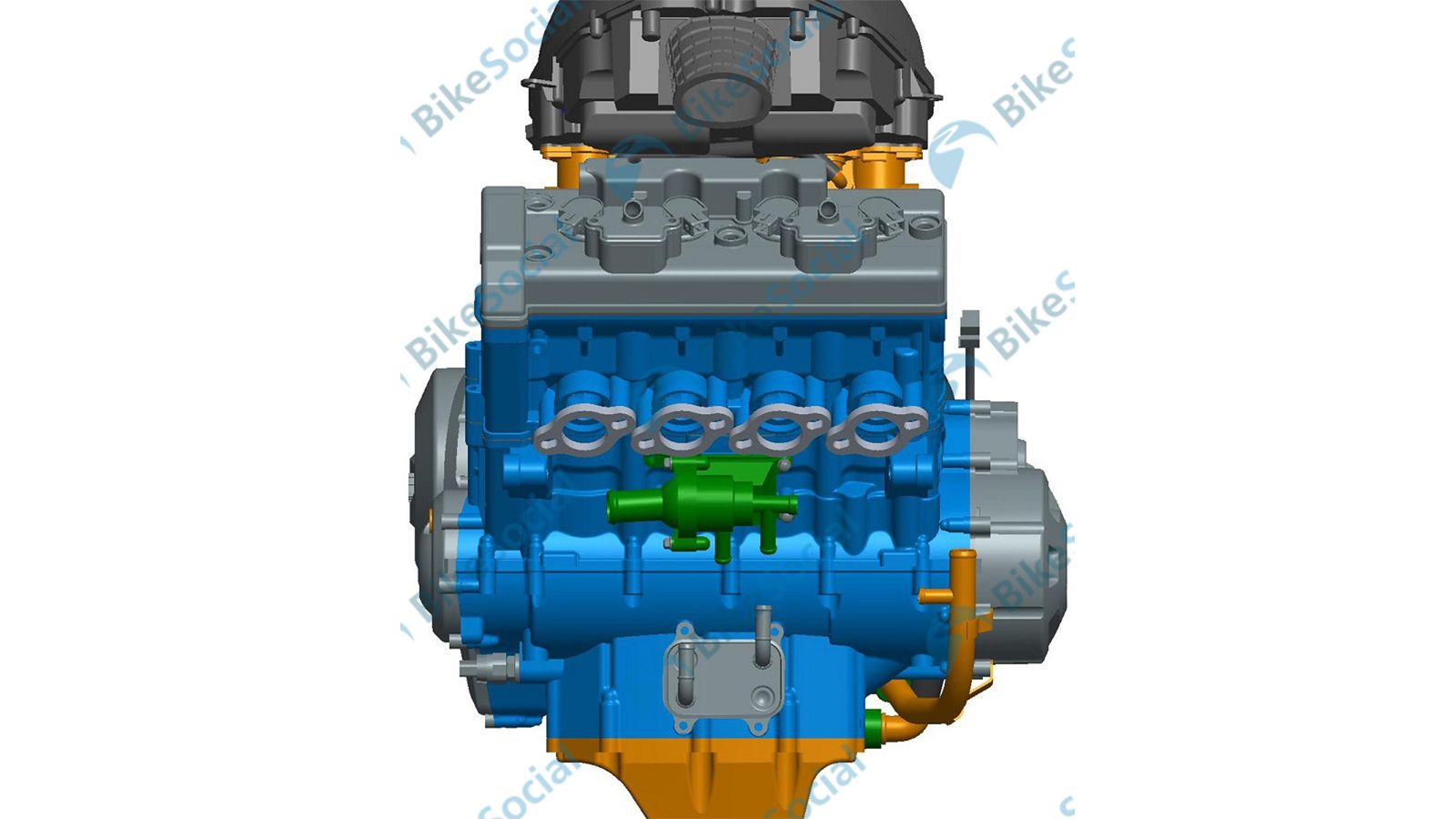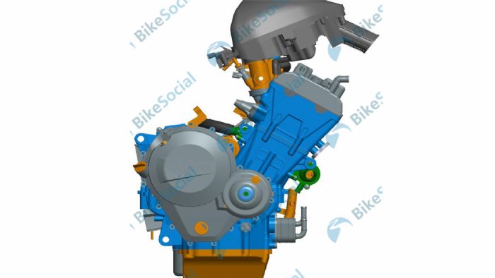 Ο κινητήρας που βλέπετε στα 3D σχέδια, ονομάζεται VSK800, με την ονομασία «Viselike» να αναφέρεται στο πλαϊνό καπάκι. Αν η μορφή του κινητήρα σας θυμίζει Honda, δεν έχετε άδικο: Οι λεπτομέρειες που συνδέουν τον VSK800 με τους 4κύλινδρους της Honda και πιο συγκεκριμένα, αυτούς των 600-650 κυβικών, δεν είναι λίγες. Η χρήση συστήματος ψεκασμού είναι πασιφανής και απολύτως αναμενόμενη, ενώ αναμένεται ότι ο κινητήρας αυτός, ακόμη και με ήπιες ρυθμίσεις, μπορεί να ξεπεράσει αρκετά τους 100 ίππους.