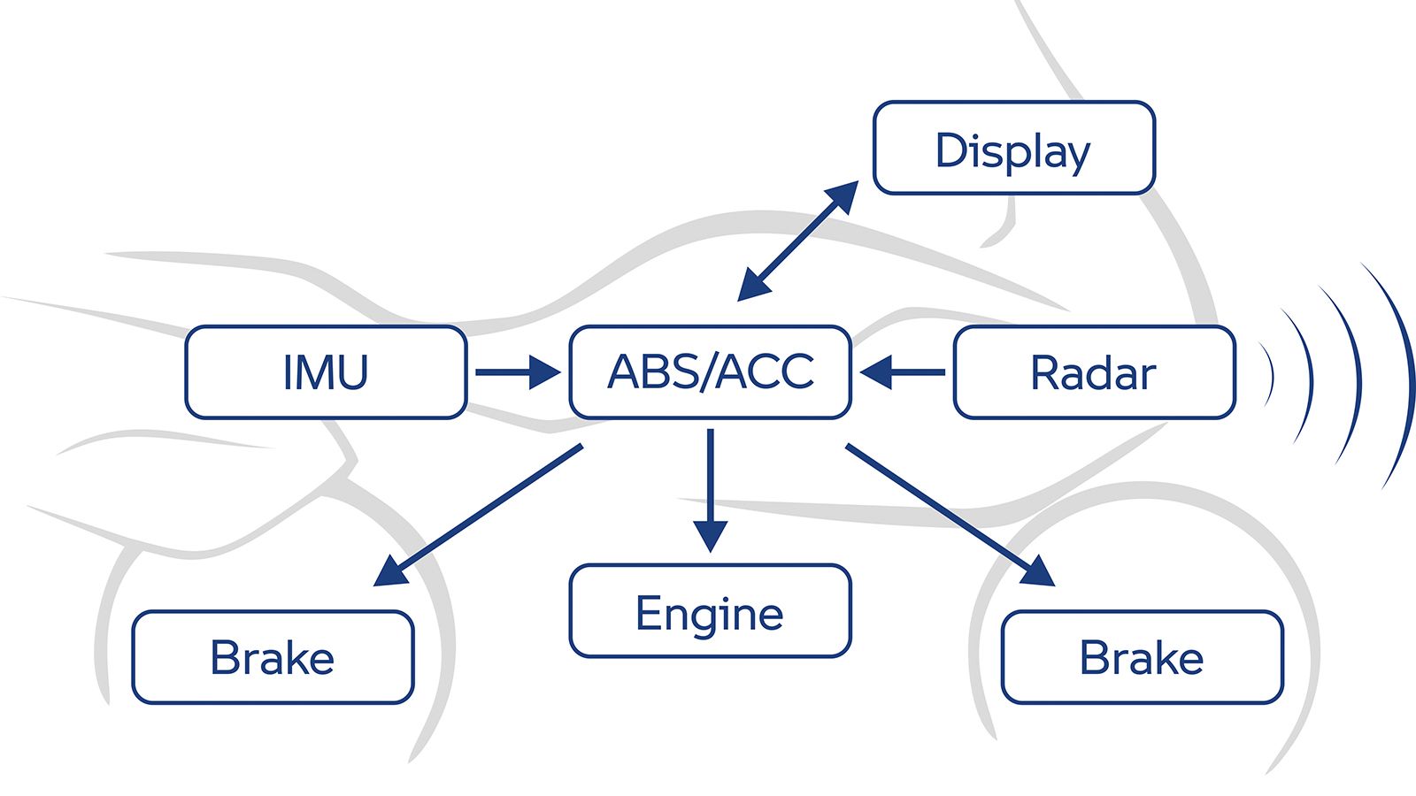 Το ACC είναι αποτέλεσμα της συνεργασίας της BMW με τον γνωστό τεχνολογικό γίγαντα Bosch και χρησιμοποιεί το ραντάρ ως ενισχυτικό στοιχείο του ήδη υπάρχοντος cruise control. Αφού ο αναβάτης επιλέξει την ταχύτητα την οποία θέλει να διατηρήσει σταθερά (μεταξύ 30-160 χλμ/ώρα), επιλέγει την απόσταση που θέλει να διατηρήσει από τα προπορευόμενα οχήματα, με την χρήση ενός πλήκτρου και το ACC χρησιμοποιεί το ραντάρ για να κάνει ακριβώς αυτό. Αν χρειαστεί προσαρμογή της ταχύτητας της μοτοσυκλέτας, το σύστημα επεμβαίνει στο σύστημα φρένων μέσω του ABS ή στον κινητήρα, μέσω του ηλεκτρονικού γκαζιού.