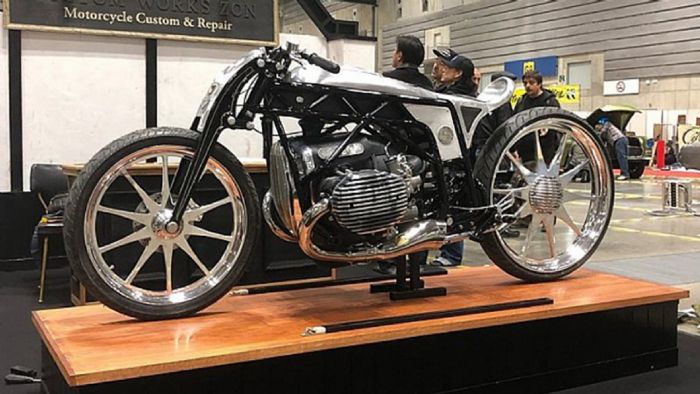 Στην έκθεση Hot Rod Custom Show στην Yokohama της Ιαπωνίας, Βρετανοί συνάδελφοί μας ανακάλυψαν μια ιδιαίτερα ενδιαφέρουσα custom μοτοσυκλέτα από την Custom Work Zon, βασισμένη σε έναν boxer της BMW. Εκτός από το μινιμάλ στυλ της, που θυμίζει τις τετρακύλινδρες Αμερικανικές υπερταχείες της δεκαετίας του 1910-20, στην καρδιά της βρίσκεται ένας θηριώδης κινητήρας.