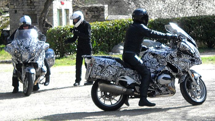Οι φωτογραφίες έχουν ήδη κάνει ένα μεγάλο κύκλο στο Διαδίκτυο και δείχνουν ξεκάθαρα τρία βαριά καμουφλαρισμένα μοντέλα της BMW που χρησιμοποιούν το νέο υγρόψυκτο boxer κινητήρα (οι λαιμοί των εξατμίσεων βγαίνουν προς τα κάτω και όχι μπροστά από τους κυλίνδρους) και παραπέμπουν άμεσα στο γνωστό R 1200 RT.