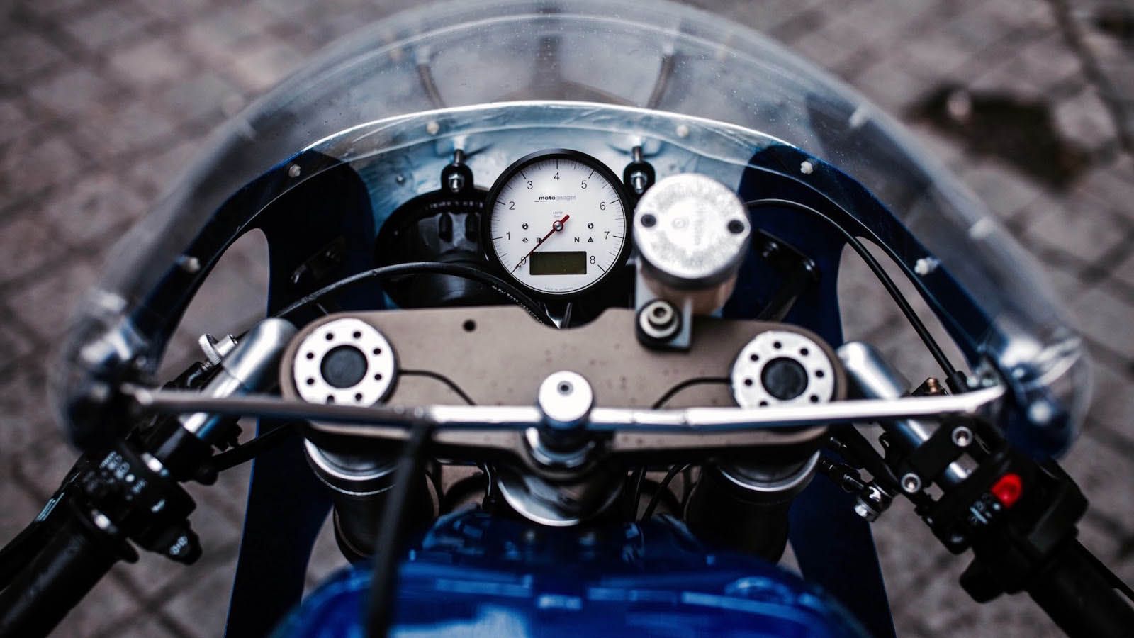 Η μοτοσυκλέτα εξοπλίστηκε με ρεζερβουάρ από Moto Guzzi, εμπρός φτερό από ανθρακονήματα και ένα custom made φέρινγκ με διπλά φωτιστικά σώματα εμπρός. Το αποτέλεσμα συγκλονίζει και μπορείτε να το απολαύσετε στις φωτογραφίες…