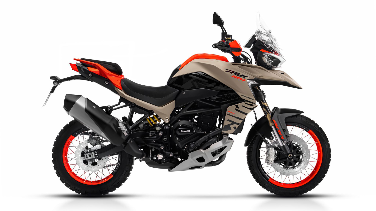 Η Benelli με το TRK 800 μπαίνει για τα καλά στην κατηγορία των μεγάλων adventure και το εξοπλίζει με πλήρως ρυθμιζόμενο πιρούνι, φρένα Brembo και εμπρός τροχό 19 ιντσών.