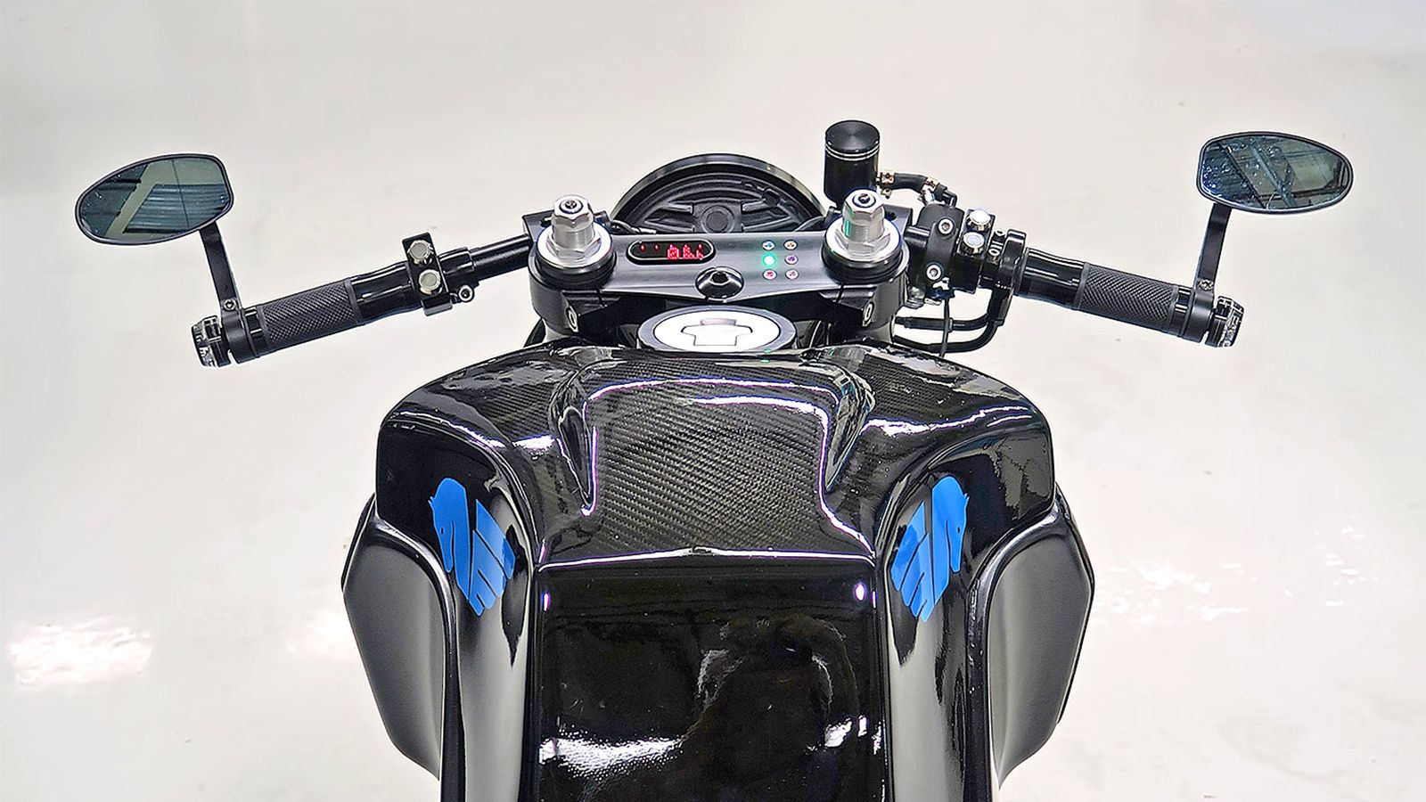 Ο Carignan τοποθέτησε επίσης μια χειροποίητη σέλα, νέα μινιμαλιστικά όργανα και κατασκεύασε την άνω τιμονόπλακα της μοτοσυκλέτας, σε μία ιδιόκτητη CNC μηχανή που έχει στο εργαστήριό του. Στο φινίρισμα, ο Carignan χρησιμοποίησε μαύρες και μπλε αποχρώσεις, με το τελικό αποτέλεσμα να εμπνέει μινιμαλιστικό δυναμισμό.