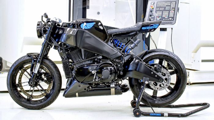 Από εκεί και πέρα, ο Carignan σχεδίασε την τελική μορφή της μοτοσυκλέτας, στις γραμμές των café racers και κατασκεύασε τα καλούπια για τα τμήματα της μοτοσυκλέτας με διαδικασία 3D printing. Κατόπιν, χρησιμοποίησε ανθρακόνημα, για να κατασκευάσει πρακτικά κάθε «πλαστικό» τμήμα της μοτοσυκλέτας, αξιοποιώντας τις μεγάλες του γνώσεις από την κατασκευή σκαφών.