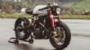 Ένα πραγματικό café racer χρειάζεται και τις κατάλληλες αναρτήσεις. Εδώ, την λύση έδωσαν ένα ανεστραμμένο ρυθμιζόμενο 50χιλ. πιρούνι από την Marzocchi και ένα επίσης ρυθμιζόμενο αμορτισέρ από την Ohlins. Οι ζάντες είναι 17 ιντσών της Excel και τα λάστιχα από supermotard. Τα φρένα προέρχονται από τη Nissin, τα clip on από CBR 1000 και το ψυγείο από CBR 125. Τέλος, η 2 σε 1 εξάτμιση έμεινε κάτω από τον κινητήρα με ένα πολύ διακριτικό σιγαστήρα.